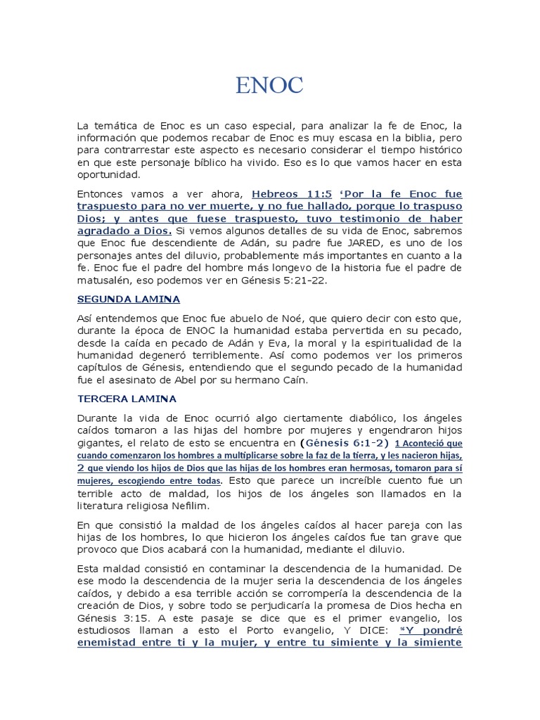 información que podemos recabar de Enoc es muy escasa en la biblia, pero
