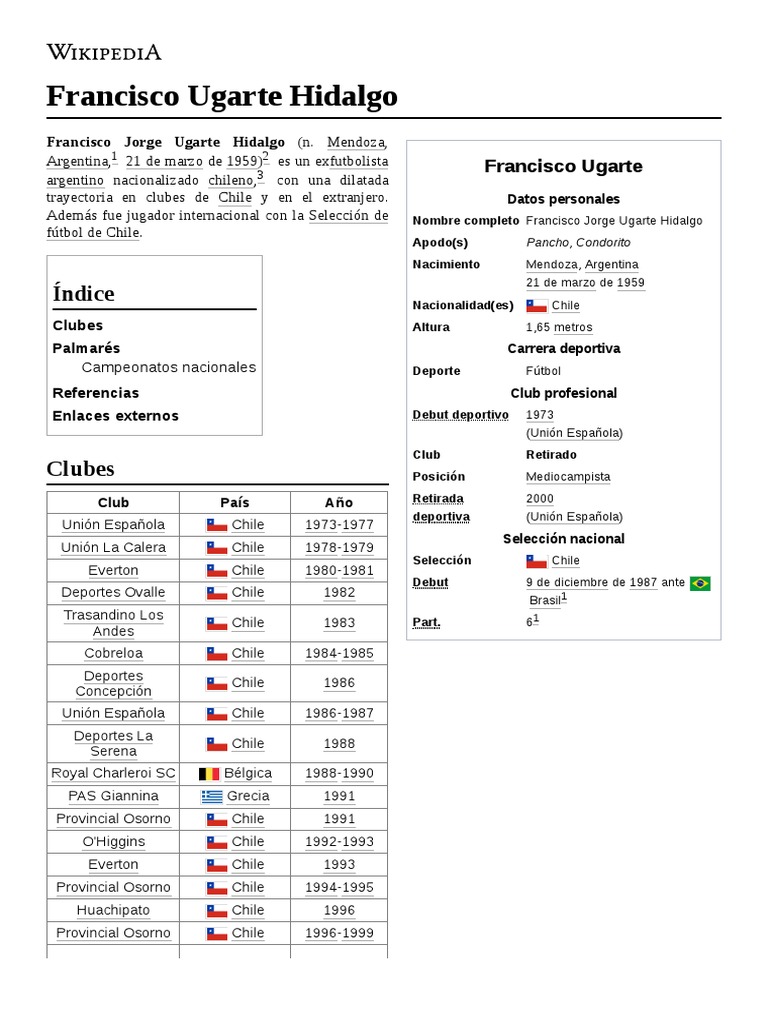 Además fue jugador internacional con la Selección de Nombre completo Francisco Jorge Ugarte Hidalgo