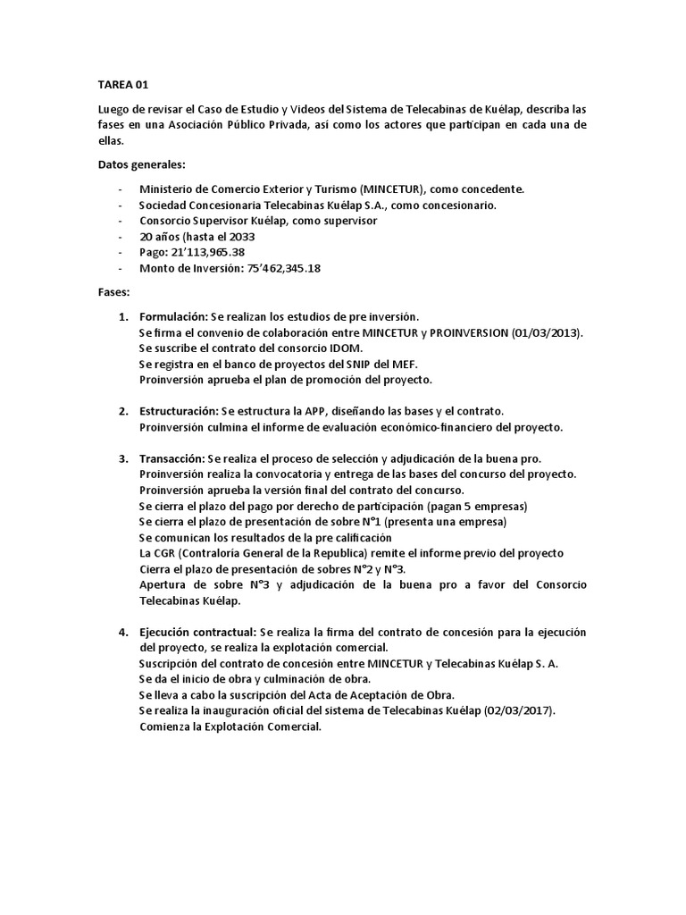Luego de revisar el Caso de Estudio y Videos del Sistema de Telecabinas de Kuélap, describa las