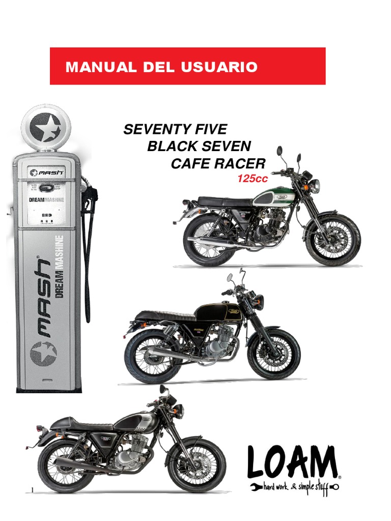 Este manual se refiere a las MASH Seventy Five, Café Racer y Black Seven 125cc. Ligeras variaciones pueden sin embargo