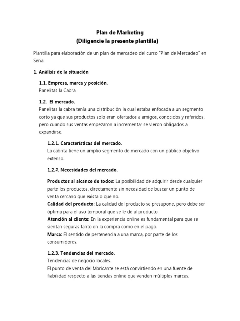 Plantilla para elaboración de un plan de mercadeo del curso “Plan de Mercadeo” en