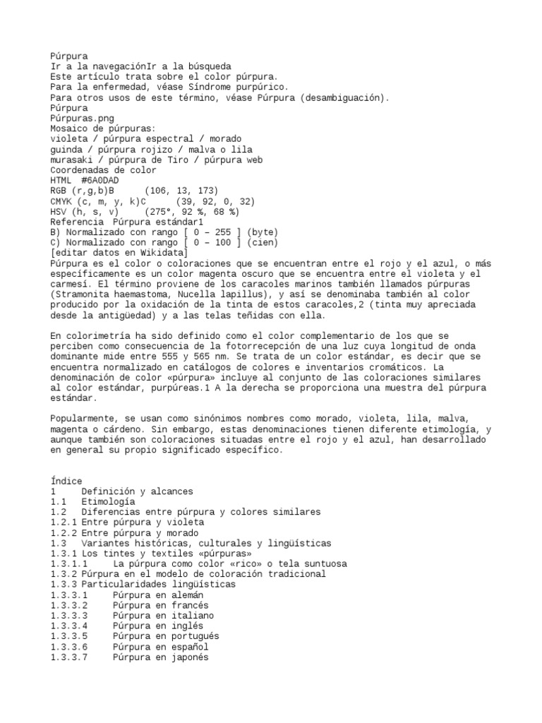 al color estándar, purpúreas.1 A la derecha se proporciona una muestra del púrpura