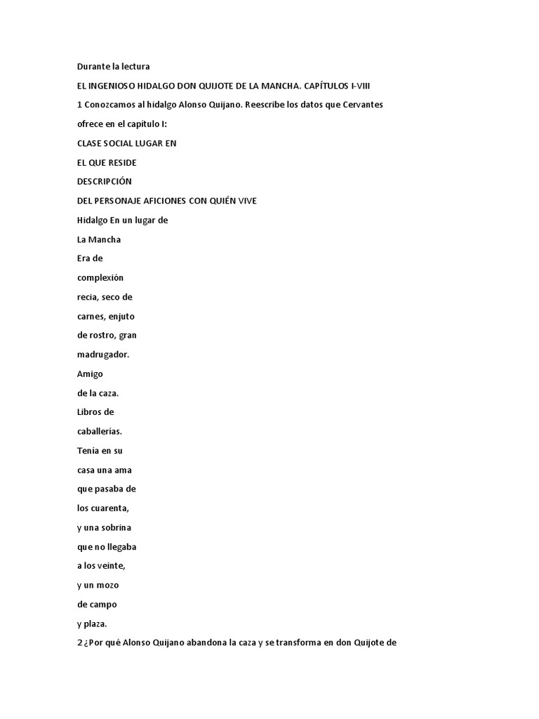 1 Conozcamos al hidalgo Alonso Quijano. Reescribe los datos que Cervantes