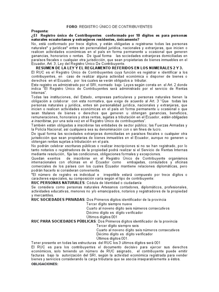 FORO: REGISTRO ÚNICO DE CONTRIBUYENTES