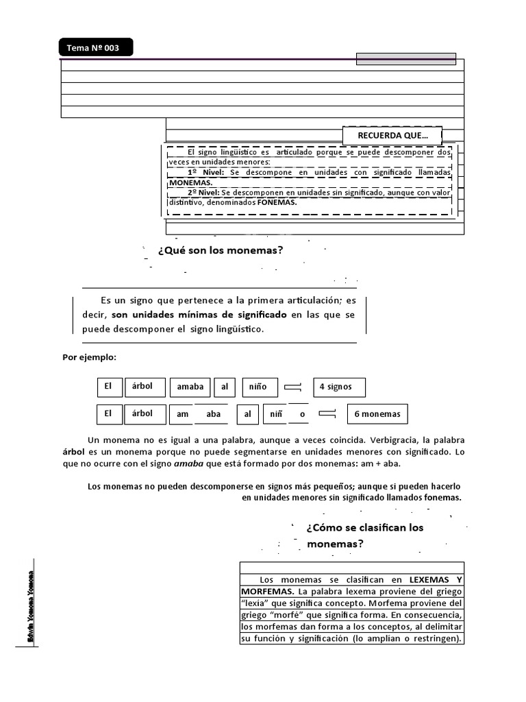 Los monemas se clasifican en LEXEMAS Y