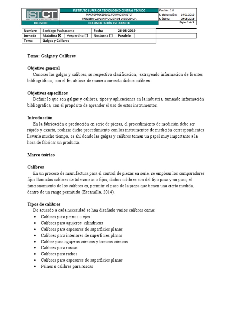 Conocer las galgas y calibres, su respectiva clasificación, extrayendo información de fuentes