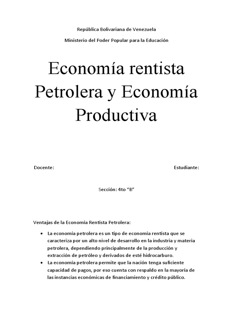 La economía rentista Petrolera se caracteriza por ser una economía