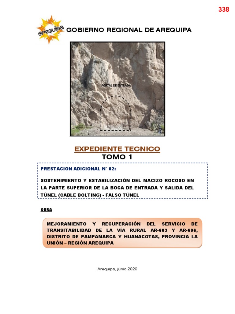 EXPEDIENTE TÉCNICO - ADICIONAL Nº 02: SOSTENIMIENTO Y ESTABILIZACIÓN DEL MACIZO ROCOSO EN LA PARTE SUPERIOR DE LA