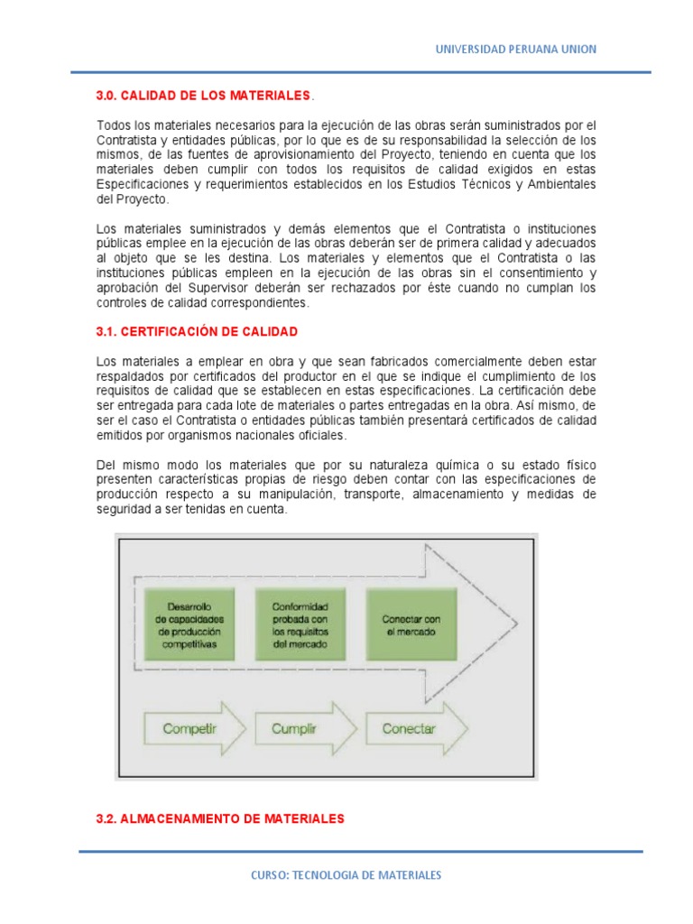 materiales deben cumplir con todos los requisitos de calidad exigidos en estas