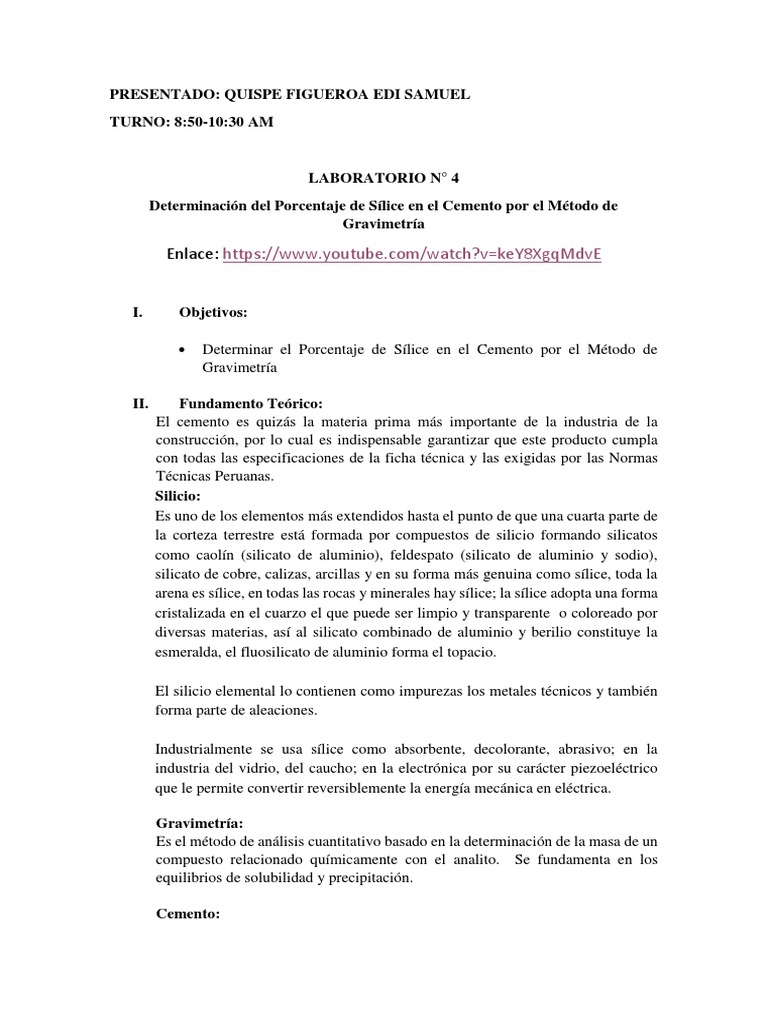 Determinación del Porcentaje de Sílice en el Cemento por el Método de
