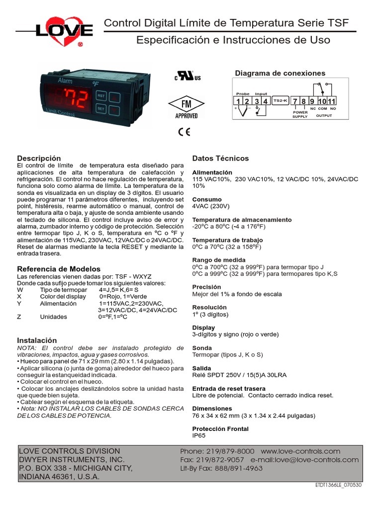 DWYER INSTRUMENTS, INC. Fax: 219/872-9057 e-mail:love@[Link]