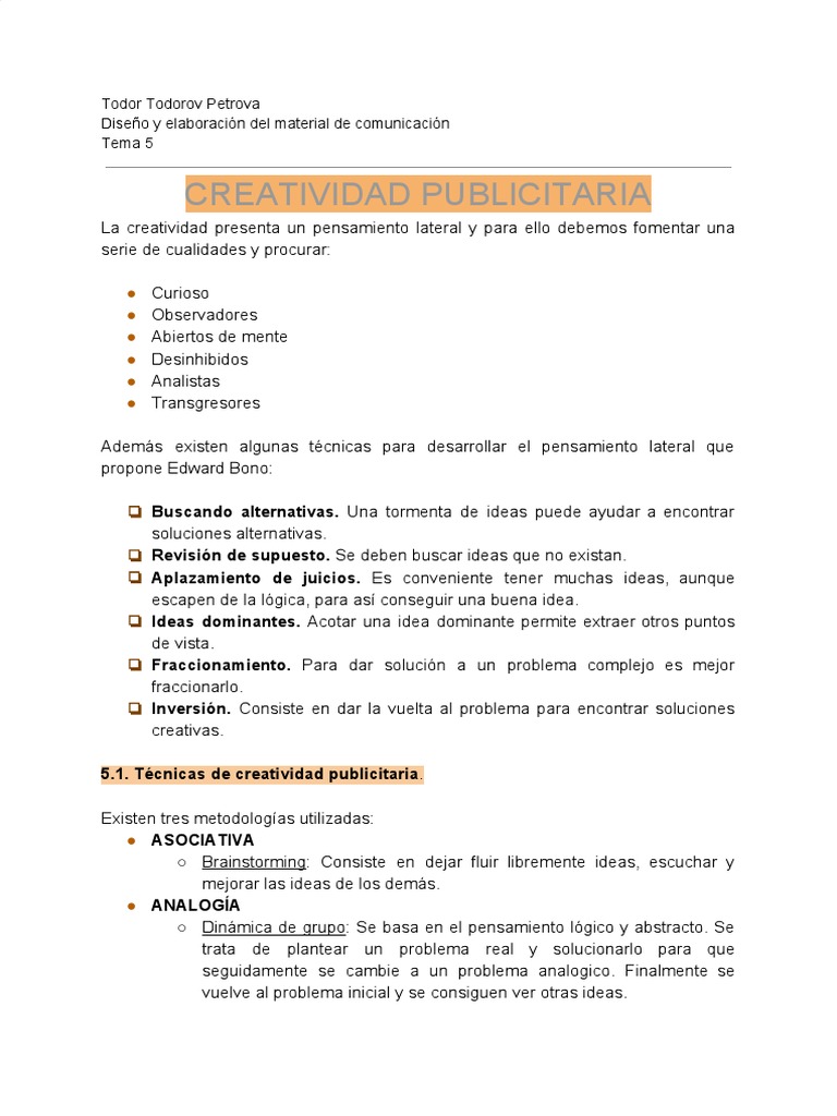 ● Creatividad emocional y espontánea. S e deben tener habilidades o