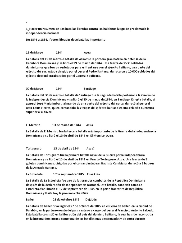 1_Hacer un resumen de :las batallas libradas contra los haitianos luego de proclamada la