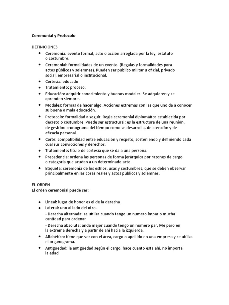 Ceremonial: formalidades de un evento. (Regalas y formalidades para