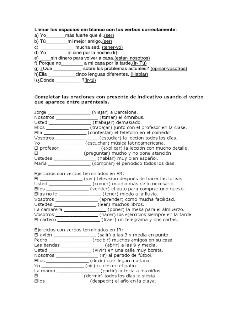 Completar las oraciones con presente de indicativo usando el verbo