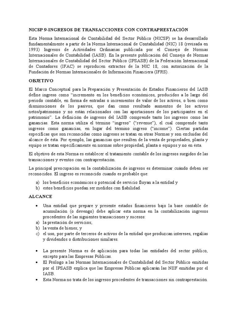 NICSP 9-INGRESOS DE TRANSACCIONES CON CONTRAPRESTACIÓN