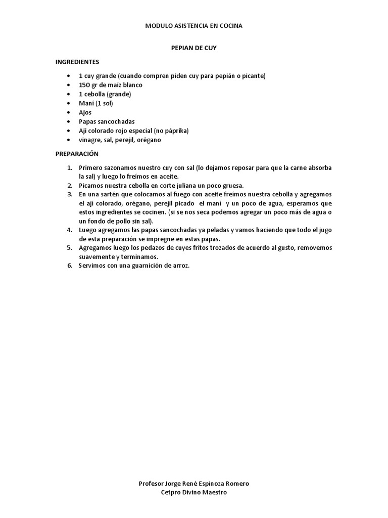1 cuy grande (cuando compren piden cuy para pepián o picante)
