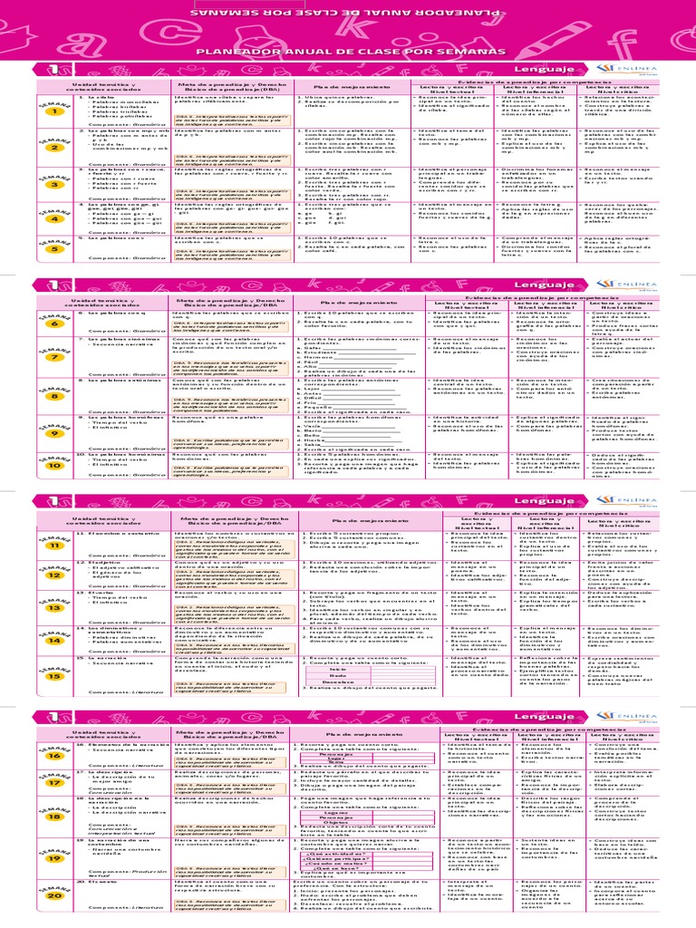Planeador Anual de Clases de Lenguaje