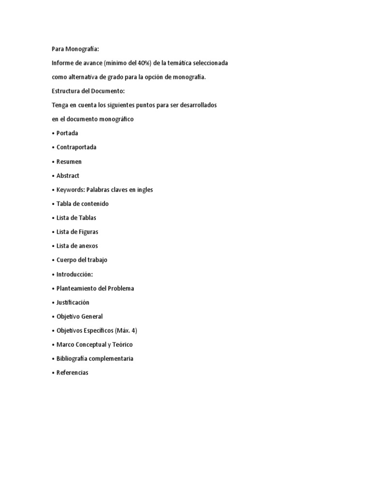 como alternativa de grado para la opción de monografía.