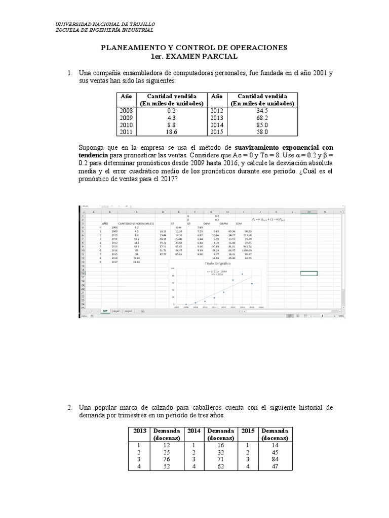 tendencia para pronosticar las ventas. Considere que Ao = 0 y To = 8. Use α = 0.2 y β =