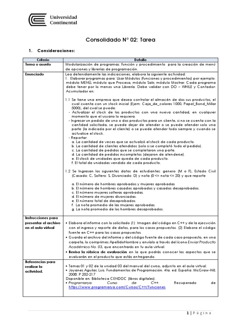 en el aula virtual con el ingreso y reporte de datos, para los casos propuestos. (2) Elabora el código