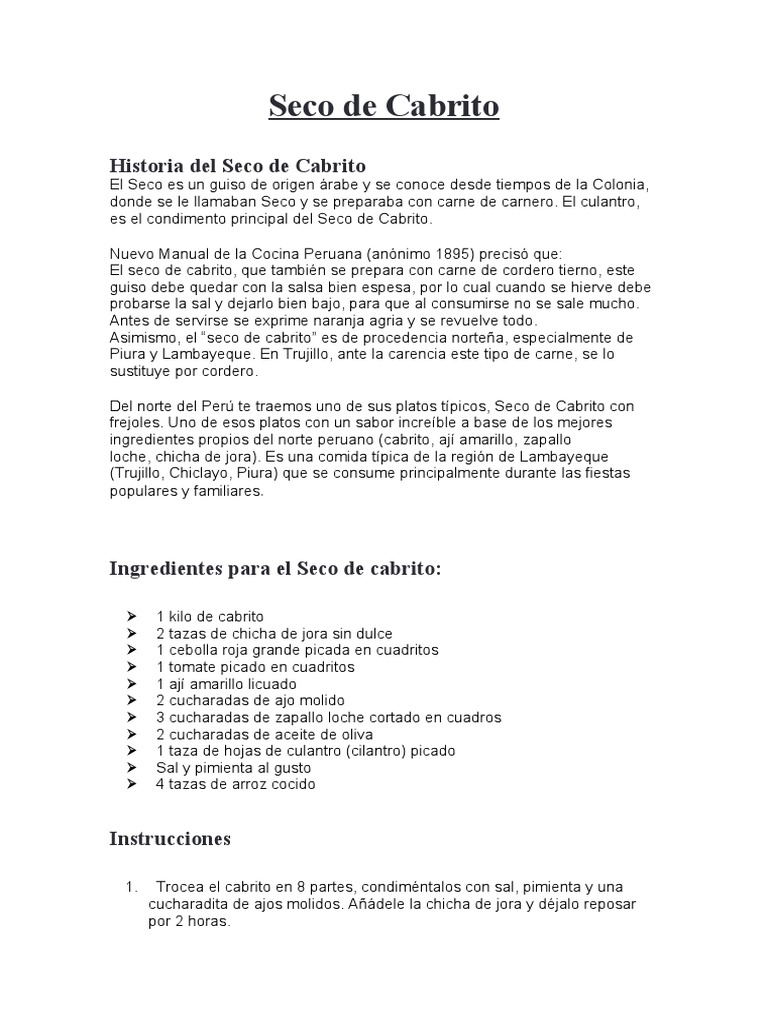 Asimismo, el “seco de cabrito” es de procedencia norteña, especialmente de