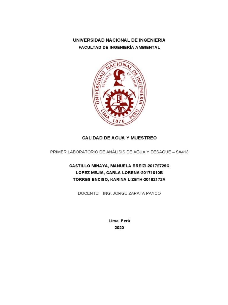 PRIMER LABORATORIO DE ANÁLISIS DE AGUA Y DESAGUE – SA413