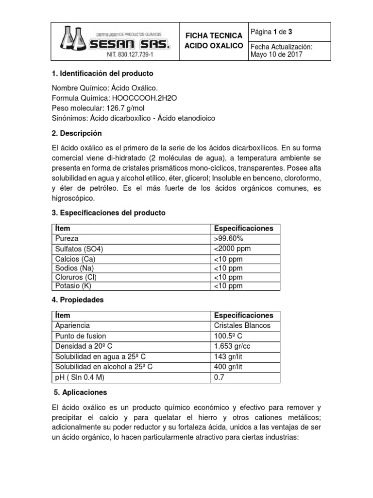ACIDO OXALICO Fecha Actualización: