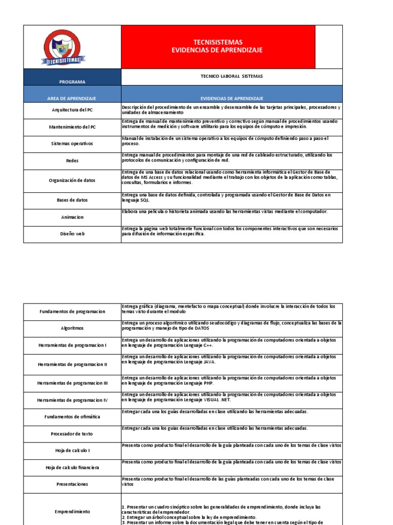 AREA DE APRENDIZAJE EVIDENCIAS DE APRENDIZAJE