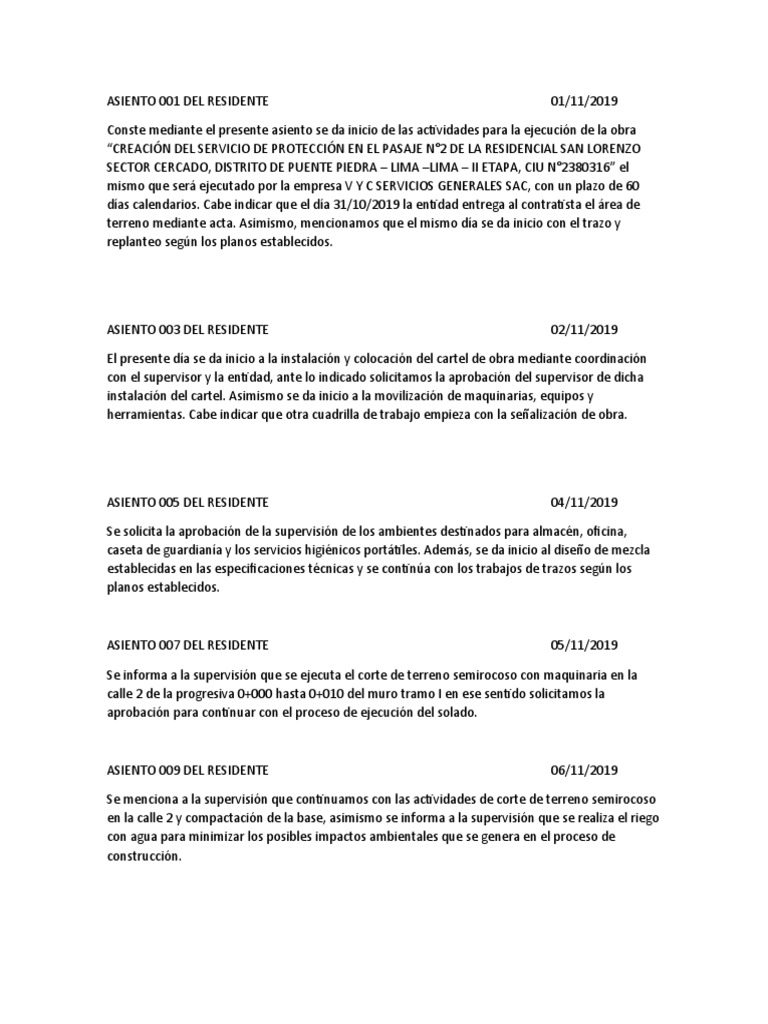 ASIENTO 001 DEL RESIDENTE 01/11/2019