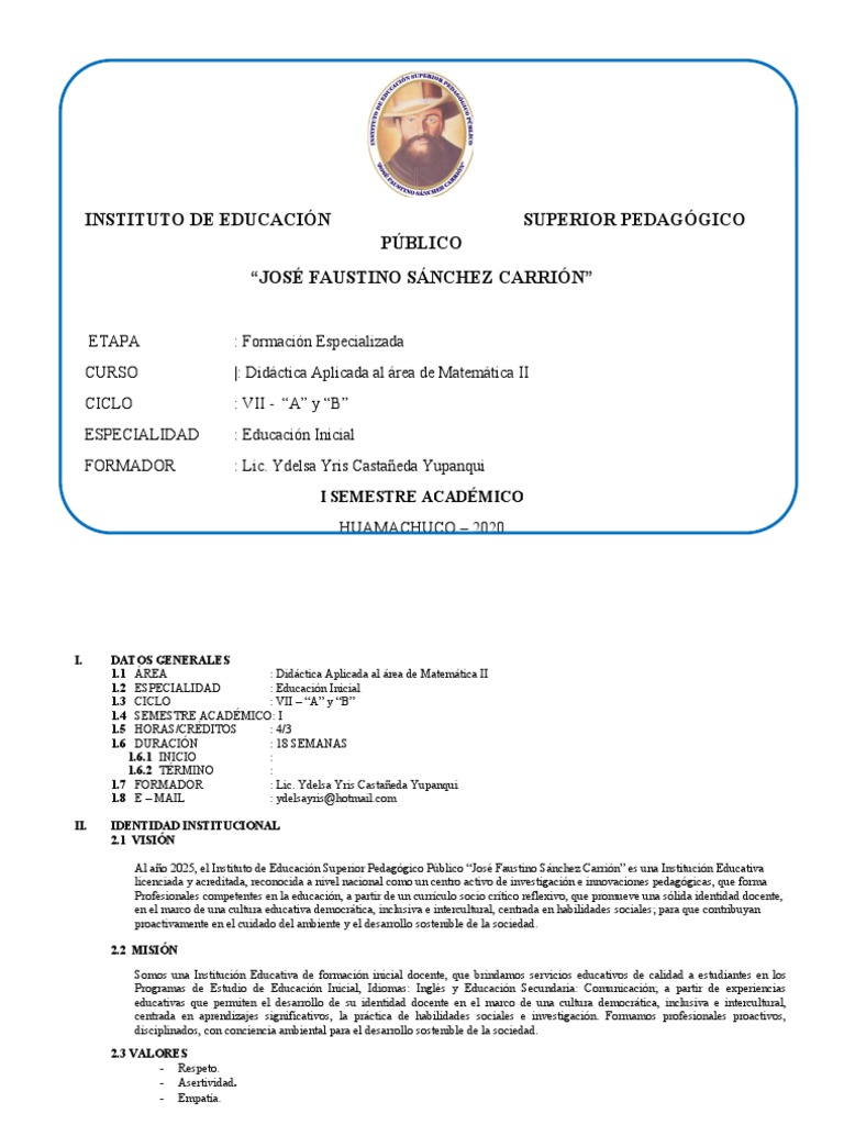 1.1 ÁREA : Didáctica Aplicada al área de Matemática II