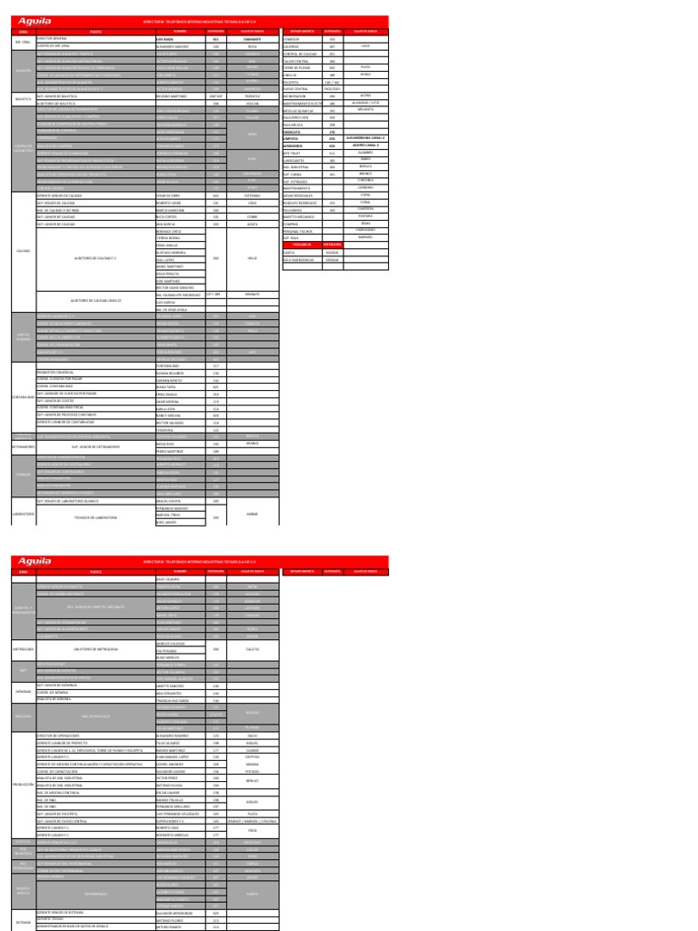 ÁREA PUESTO NOMBRE EXTENSIÓN CLAVE DE RADIO DEPARTAMENTO EXTENSIÓN CLAVE DE RADIO