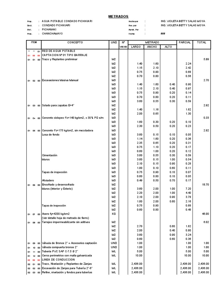 Proy. : AGUA POTABLE CONDADO PICHIKIARI Hecho por : ING. VIOLETA BETTY SALAS MOYA