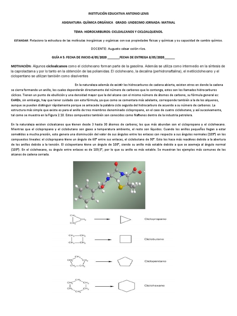 compuestos orgánicos cicloalcanos y cicloalquenos.