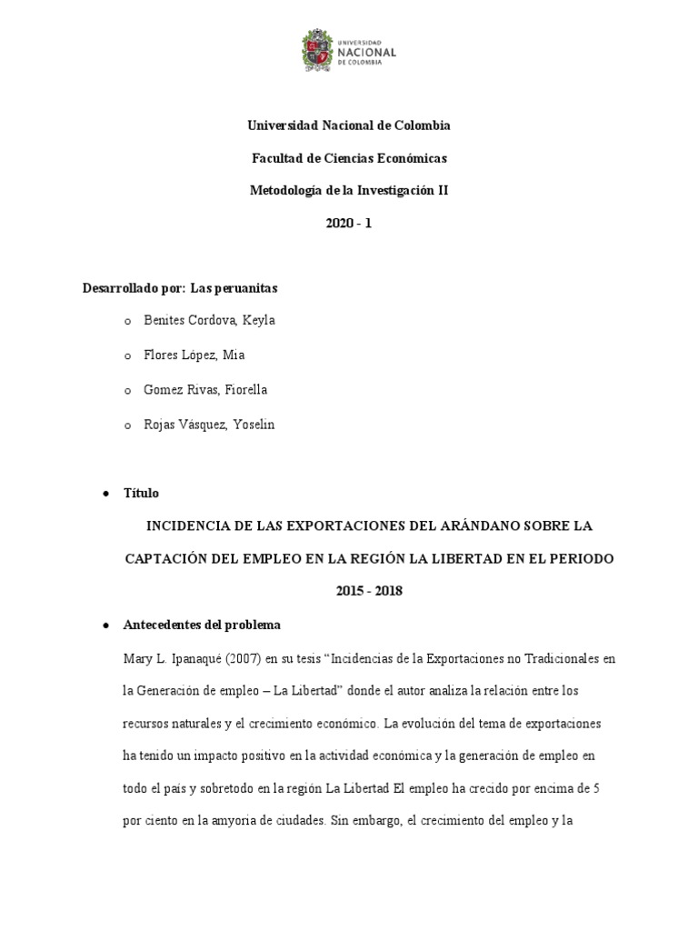 de las exportaciones de arándano sobre la captación del nivel de empleo de la región La Libertad