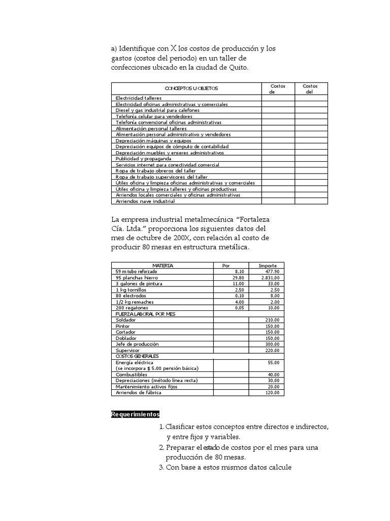 1.Clasifique entre costo de producción y gastos del