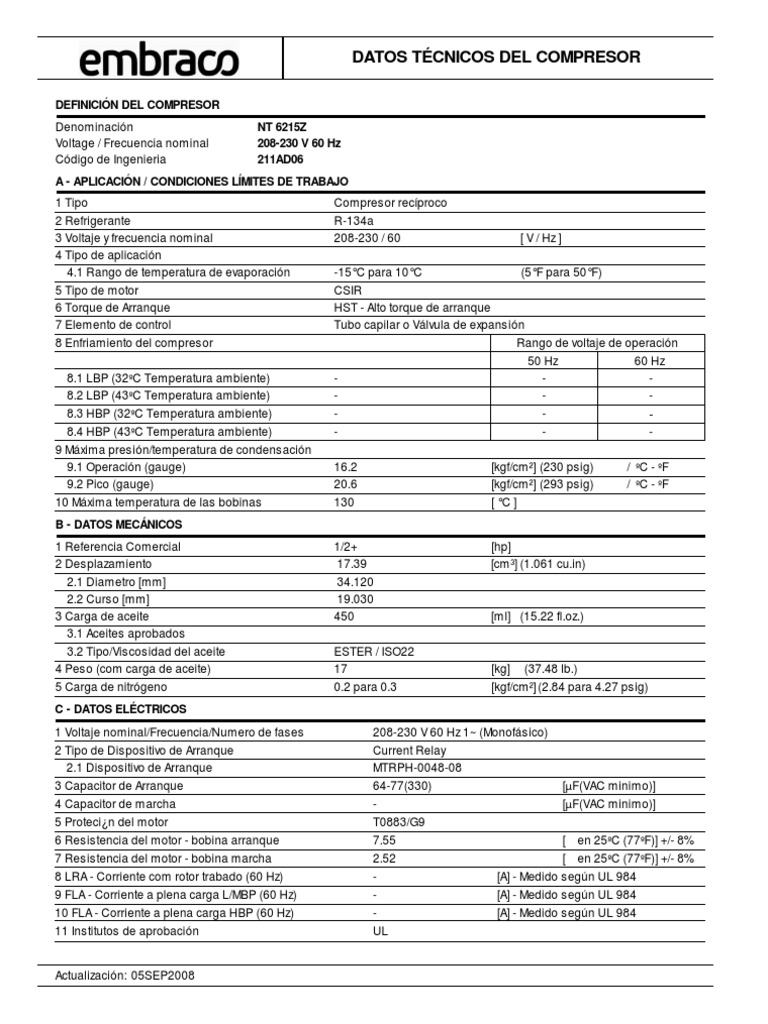 DATOS TÉCNICOS DEL COMPRESOR