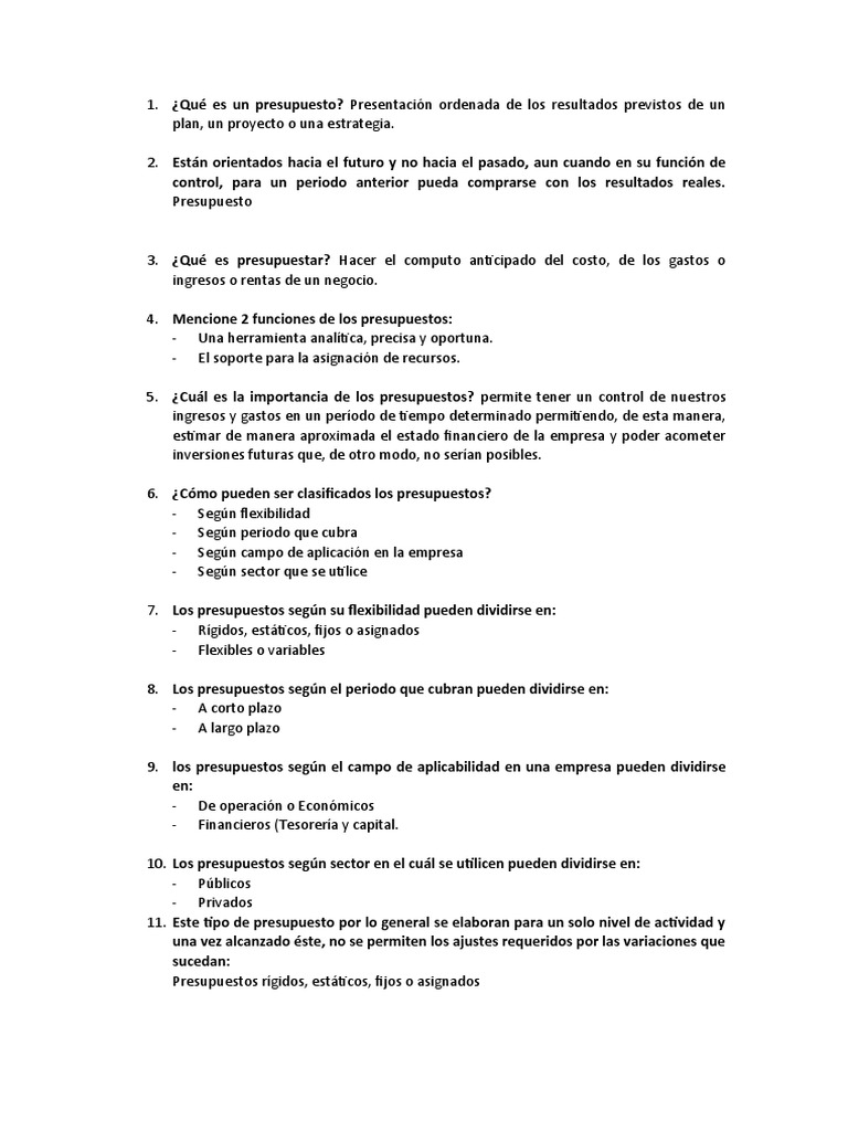 15. Qué son presupuestos financieros: Son aquellos que incluyen el cálculo de partidas