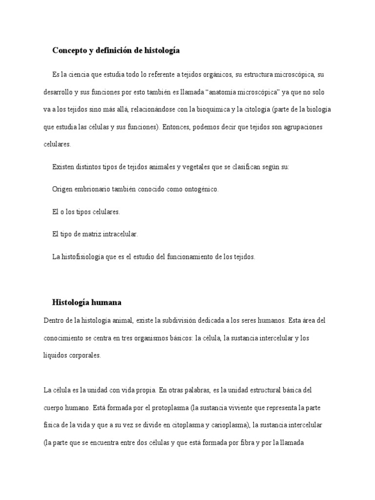 Concepto y definición de histología