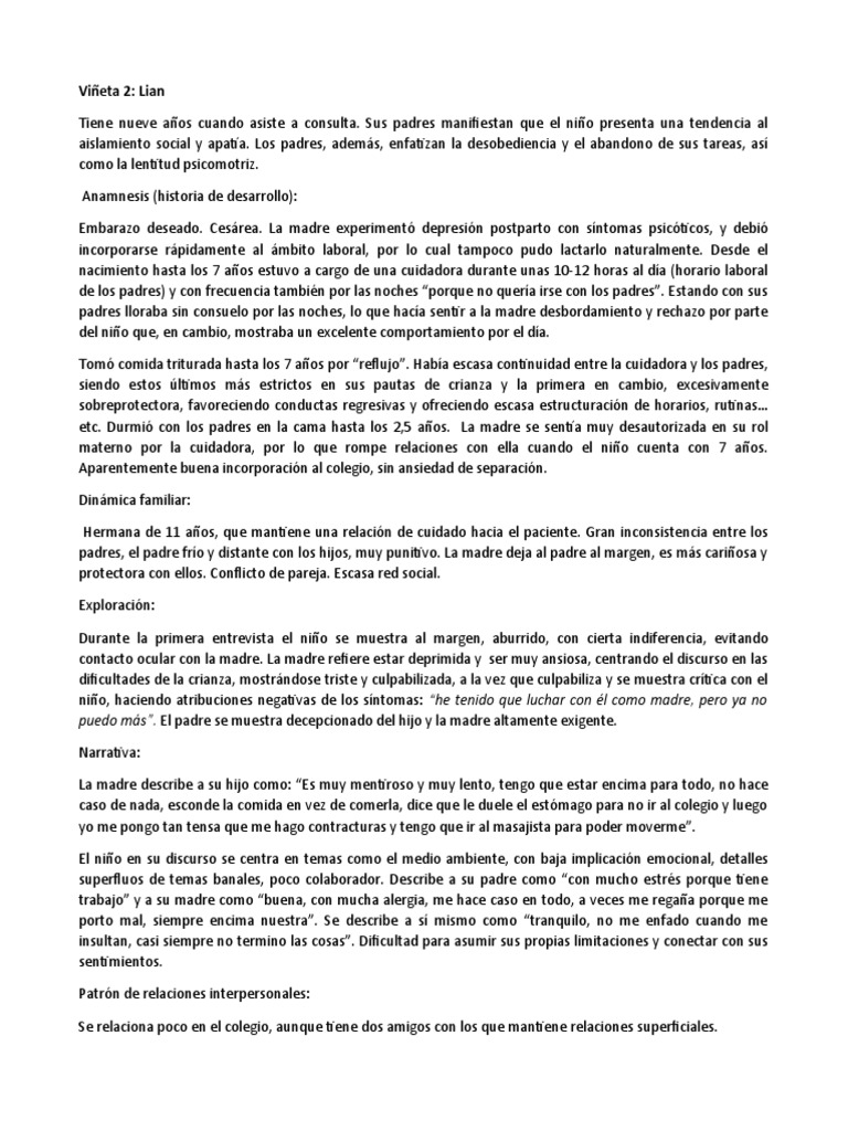 superfluos de temas banales, poco colaborador. Describe a su padre como “con mucho estrés porque tiene