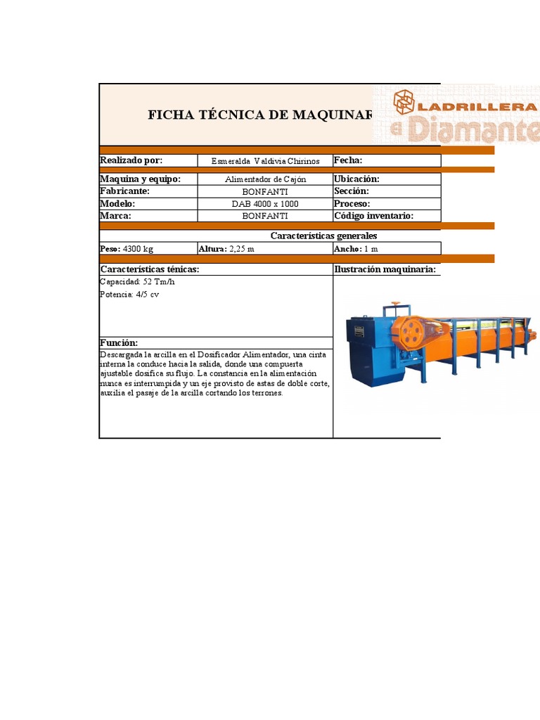 Maquina y equipo: Alimentador de Cajón Ubicación: