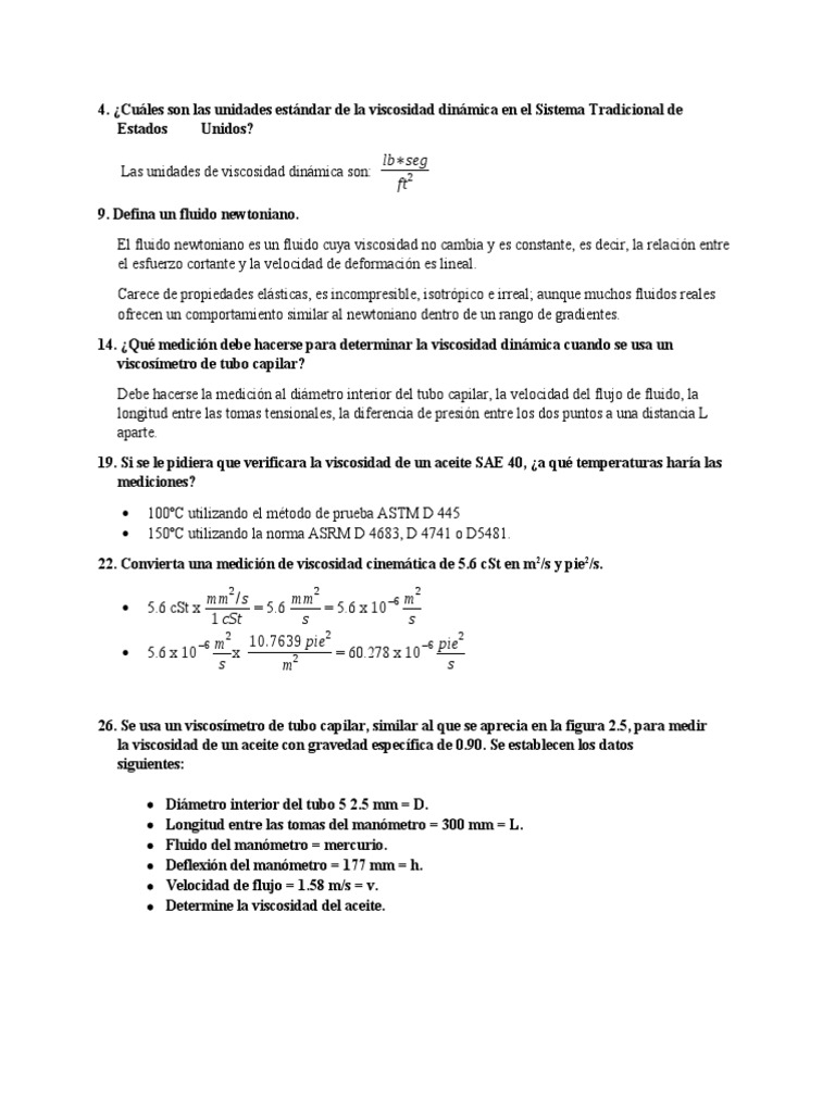 Rpta. La viscosidad del aceite tendrá el valor de 9.042 x 10−6 Pa . s.