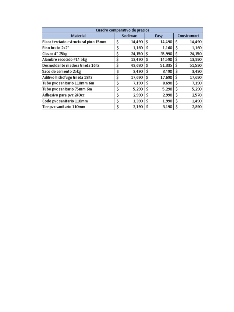 Cuadro comparativo de precios