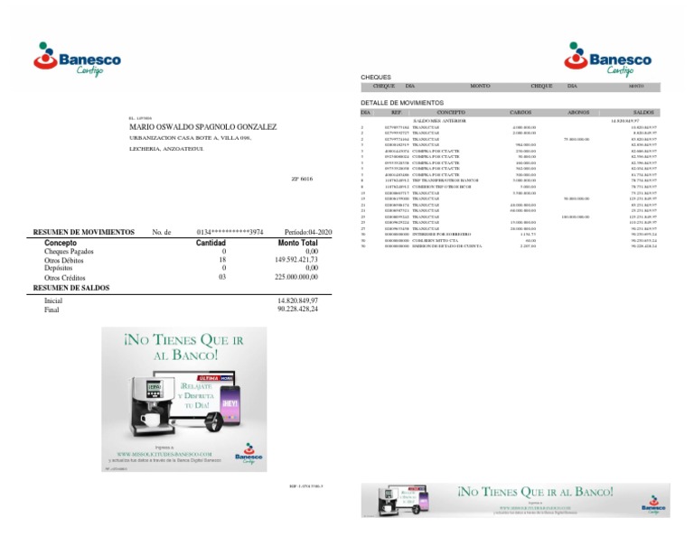 RESUMEN DE MOVIMIENTOS No. de 0134***********3974 Período:04-2020 30 00000000000 INTERESES POR SOBREGIRO 1.154,73 90.230.695,24