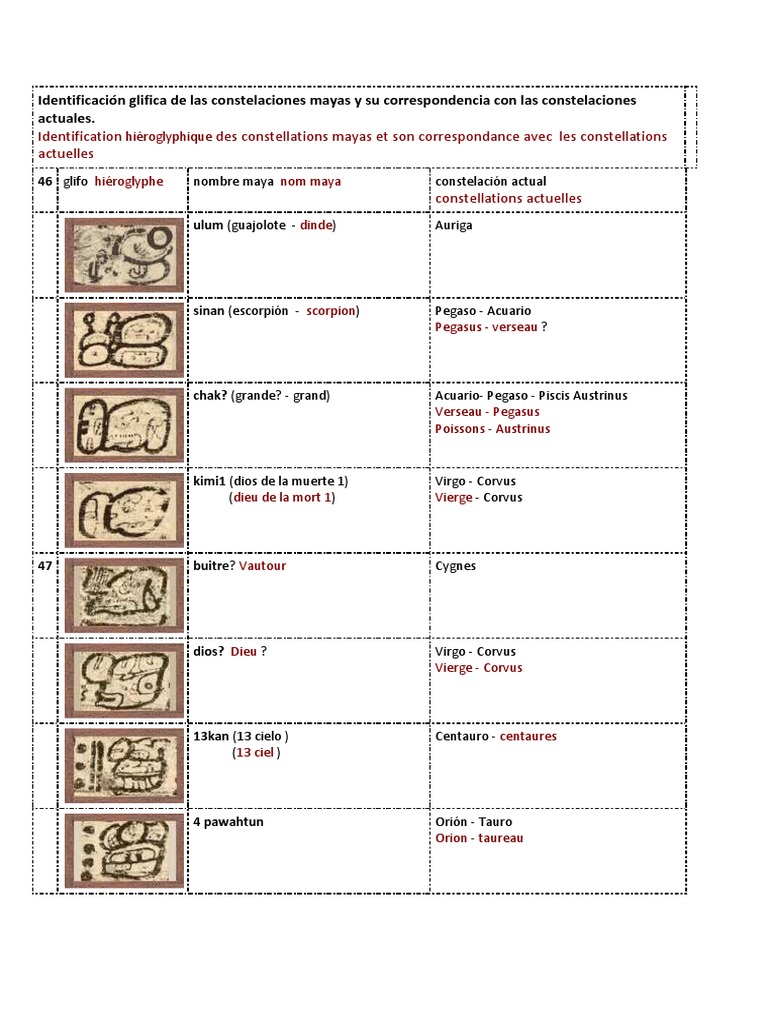 Identification hiéroglyphique des constellations mayas et son correspondance avec les constellations