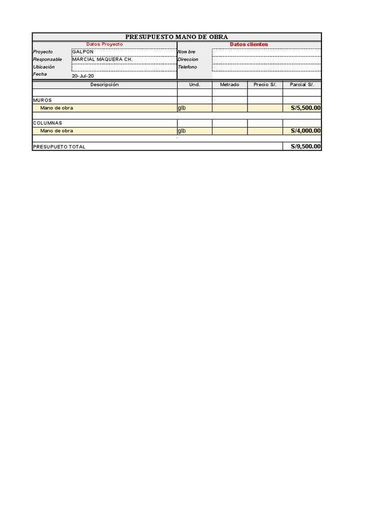 PRESUPUESTO MANO DE OBRA