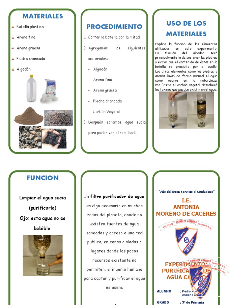 - Arena gruesa las toxinas que puedan existir en el agua.