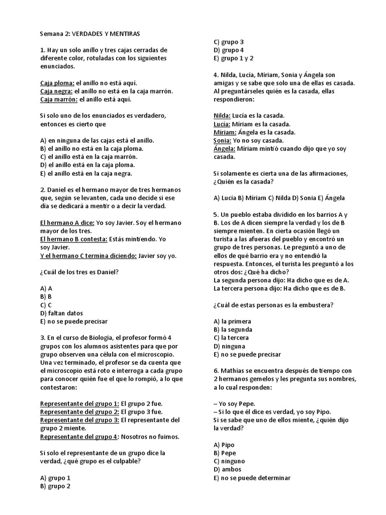 Semana 2: VERDADES Y MENTIRAS