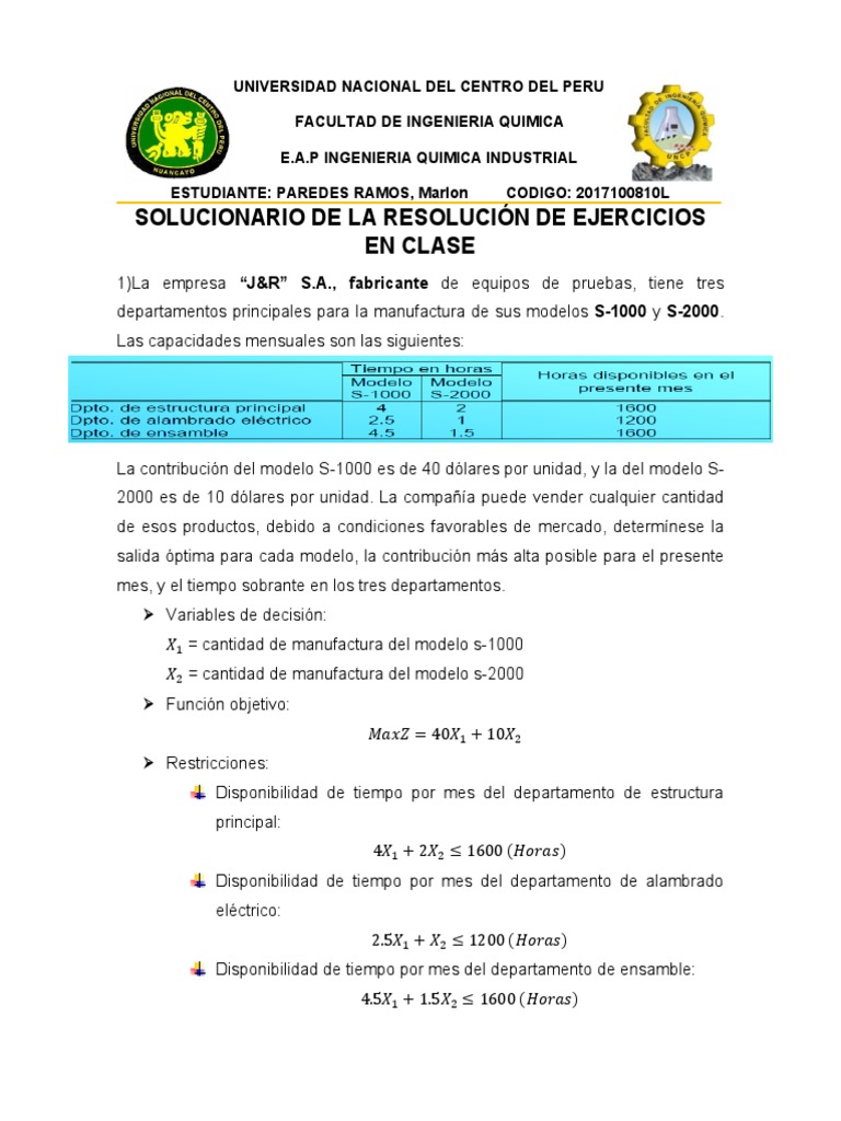 VARIABLES DE DESICIÓN: modelo S-1000 modelos s-2000