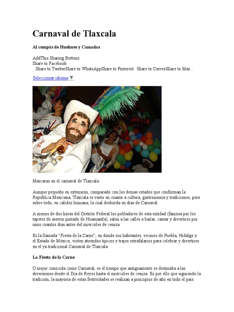 Las danzas del carnaval que se realizan en el estado de Tlaxcala, son de coreografía